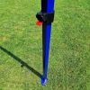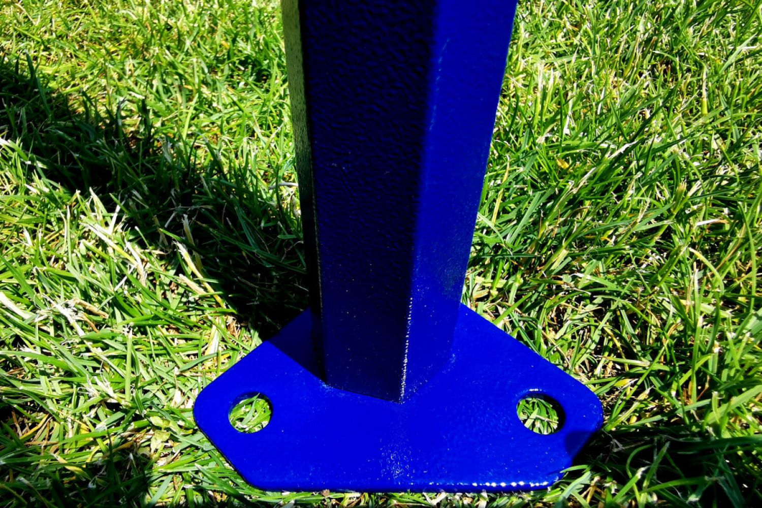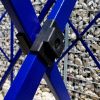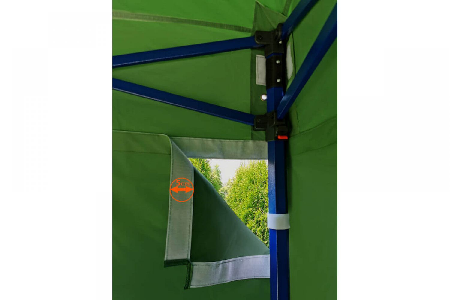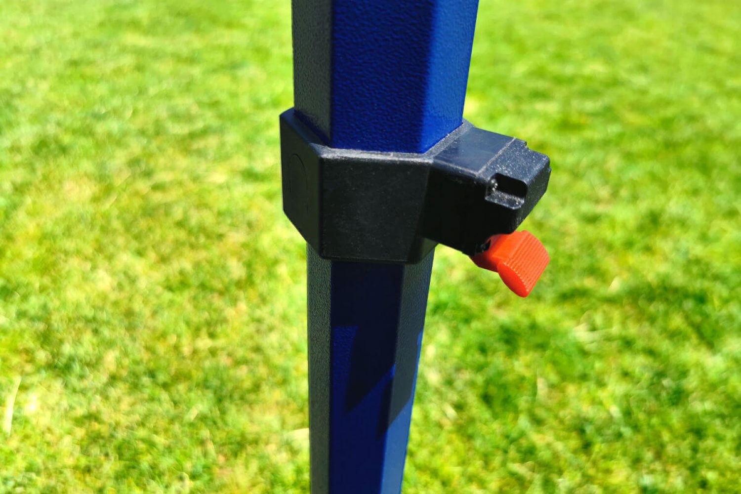 Tout le reste est une structure solide en acier de haute qualité fabriquée à partir de profils épais. Les profils sont recouverts d'une peinture bleue de haute qualité, également résistante à un maniement moins délicat. Les pieds, qui sont en contact constant avec le sol, sont galvanisés et épais. En raison de leur épaisseur, il est difficile d'imaginer une déformation des pieds. Chaque pied possède 2 trous pour l'ancrage avec des piquets, qui sont inclus avec la tente.