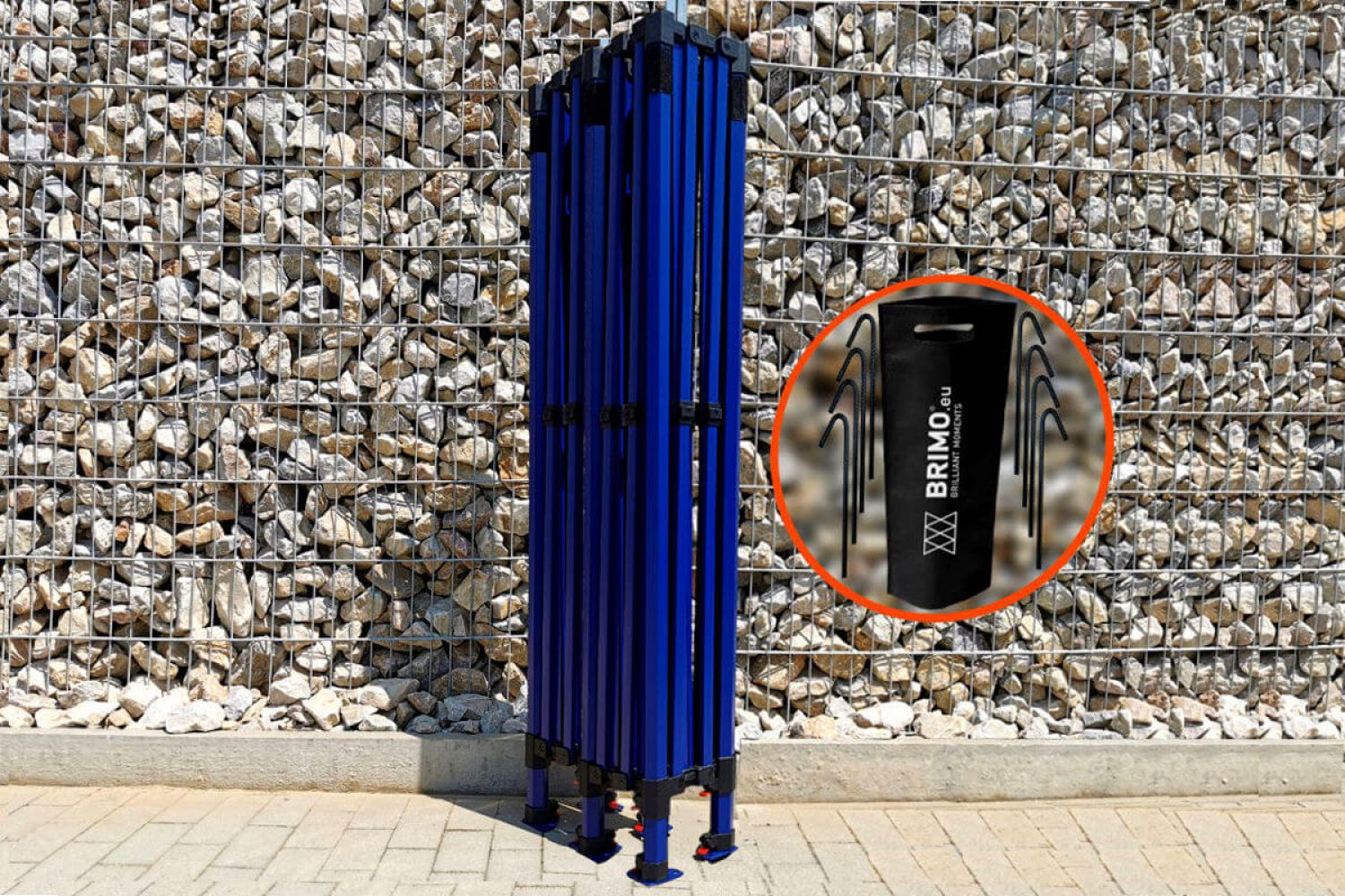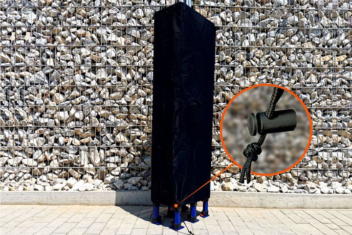 - Le modèle Exclusive en acier utilisé par temps venteux jusqu'à 60 km/h. Pieds avec trous pour l'ancrage au sol à l'aide de piquets – offerts !